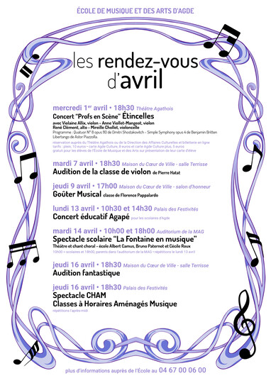 - Découvrez les manifestations du mois d'avril de l'école de musique d'Agde